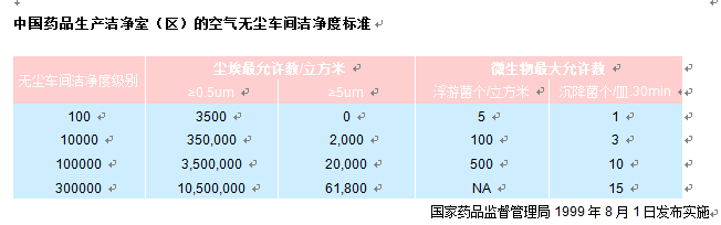 中國(guó)藥品潔凈室懸浮塵粒與潔凈度對(duì)照表